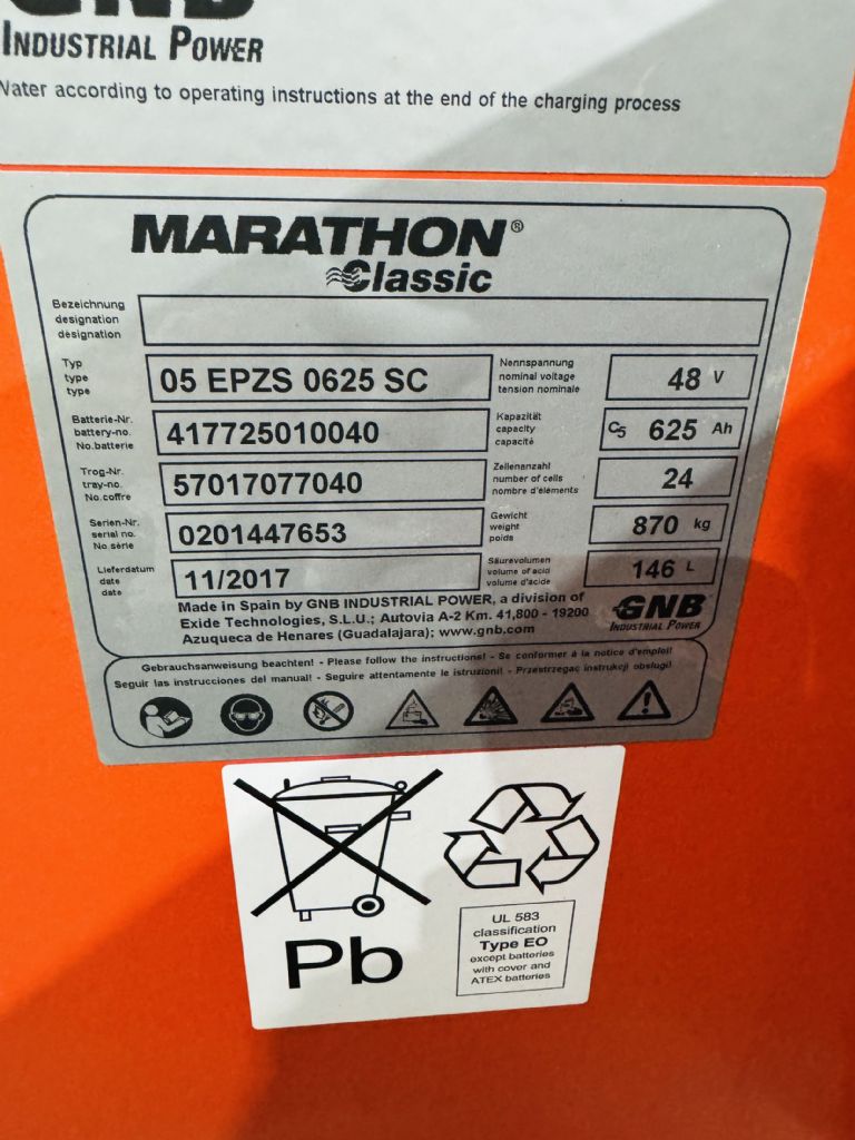 - Batterie: GNB 2017 48V 625Ah 80 – 100%