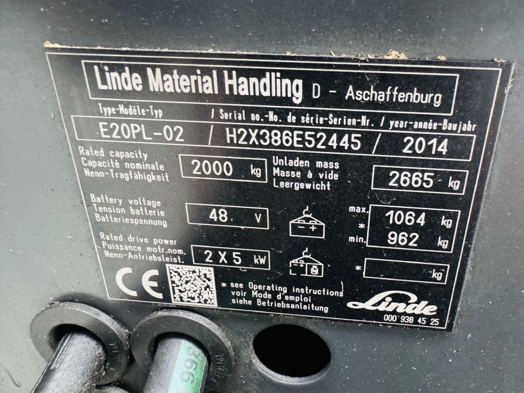 Linde E 20 PL-02 EVO Triplex Batterie Bj.22