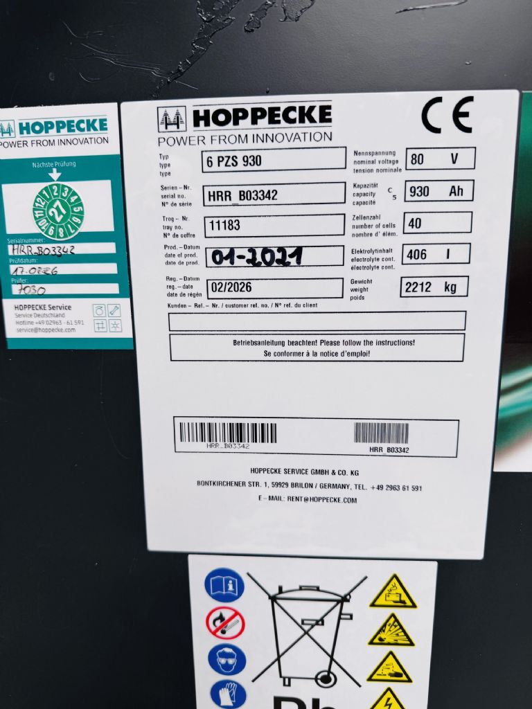 - Batterie: Hoppecke 2021 80V 930Ah 60 – 80%