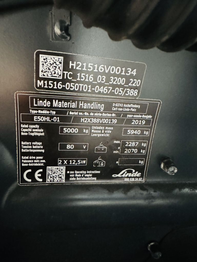 Linde E 50 HL-01 Kabine Triplex STVO Batterie Bj.21 ZVG
