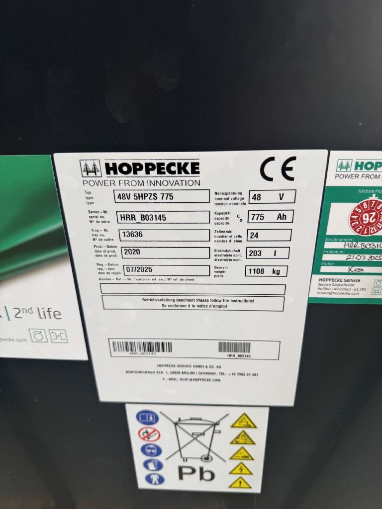 - Batterie: Hoppeke 2020 48V 775Ah 80 – 100%