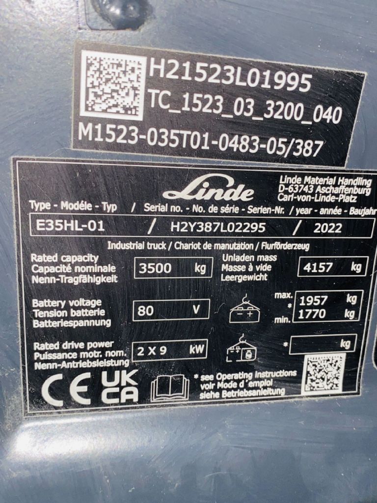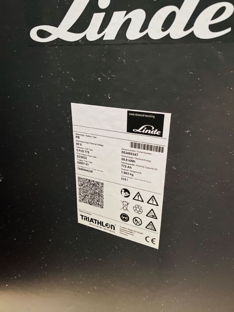 - Batterie: Linde 2022 80V 775Ah 80 – 100%