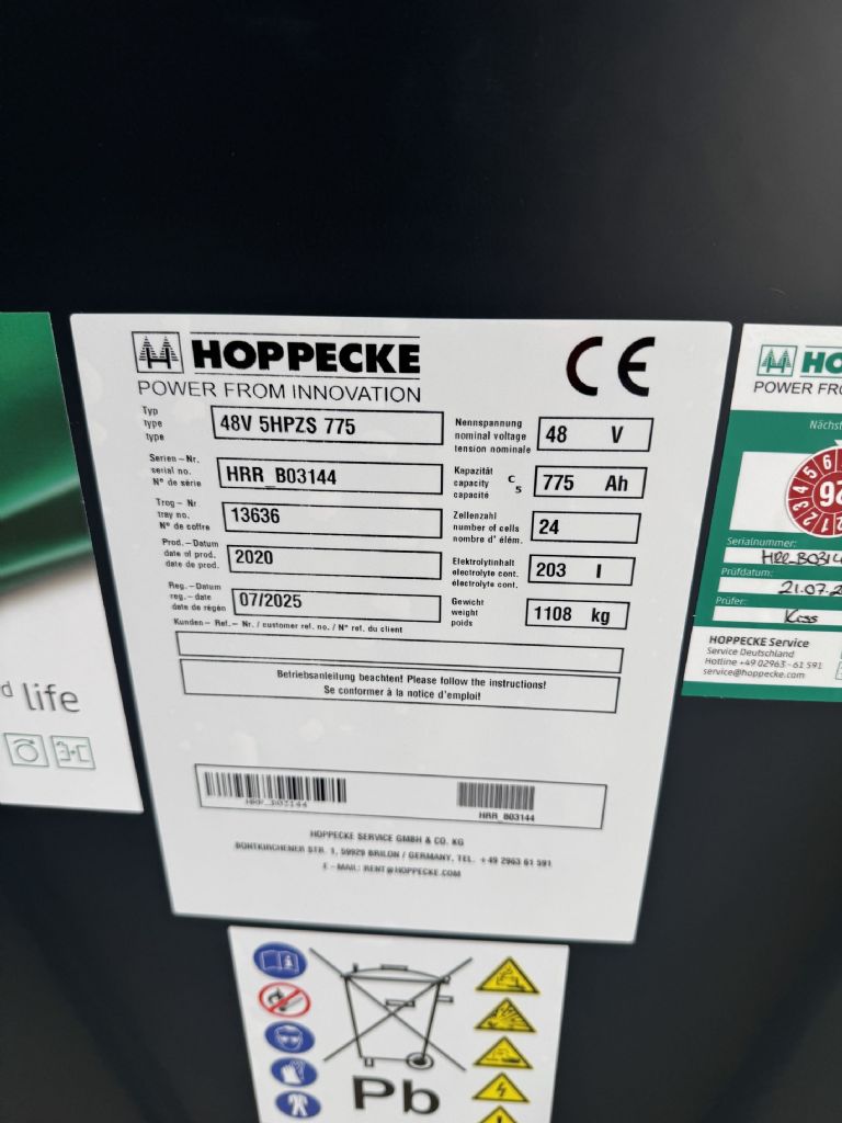 - Batterie: Hoppeke 2020 48V 775Ah 80 – 100%